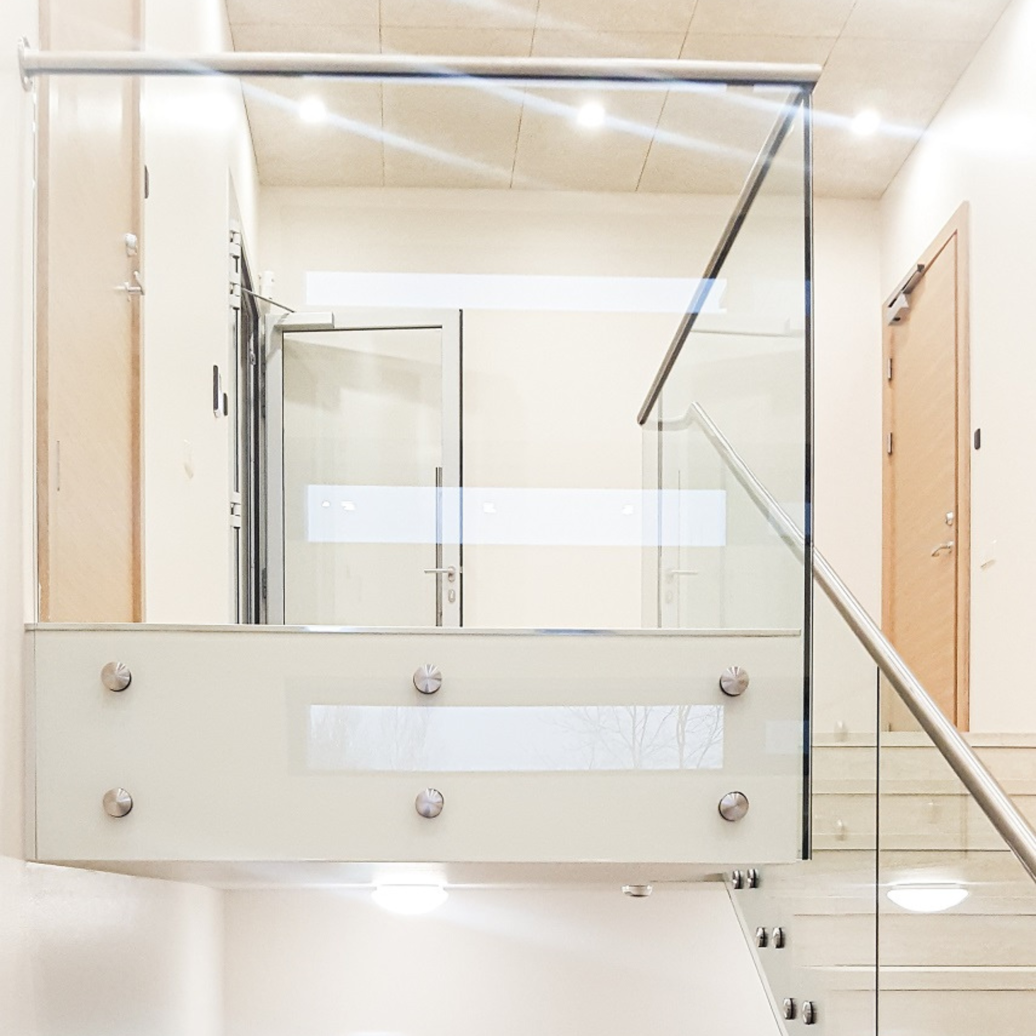 Glass staircases, balconies, loggias, and terrace railings, equipped with glass adaptors, are a hallmark of modern...