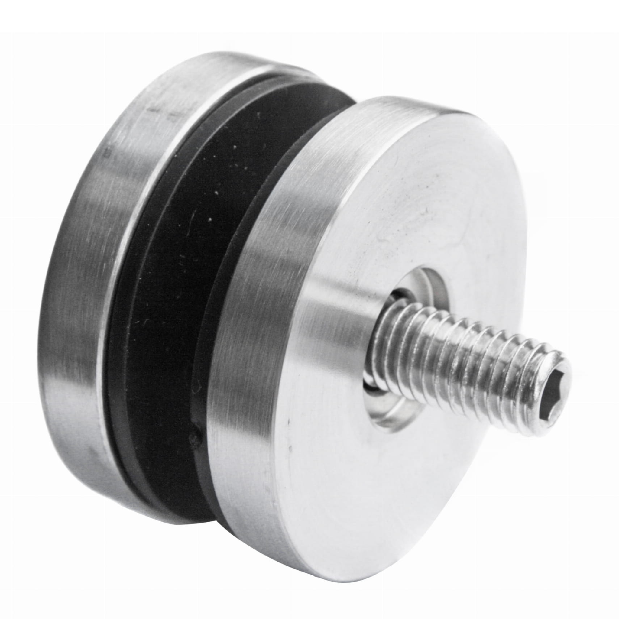 Punktveida stiprinājums stiklam pie taisnas plaknes, D50mm, distancers ar iekšējo vītni M10/12, t=10mm, nerūsējošais tērauds AISI304, slīpēts.
